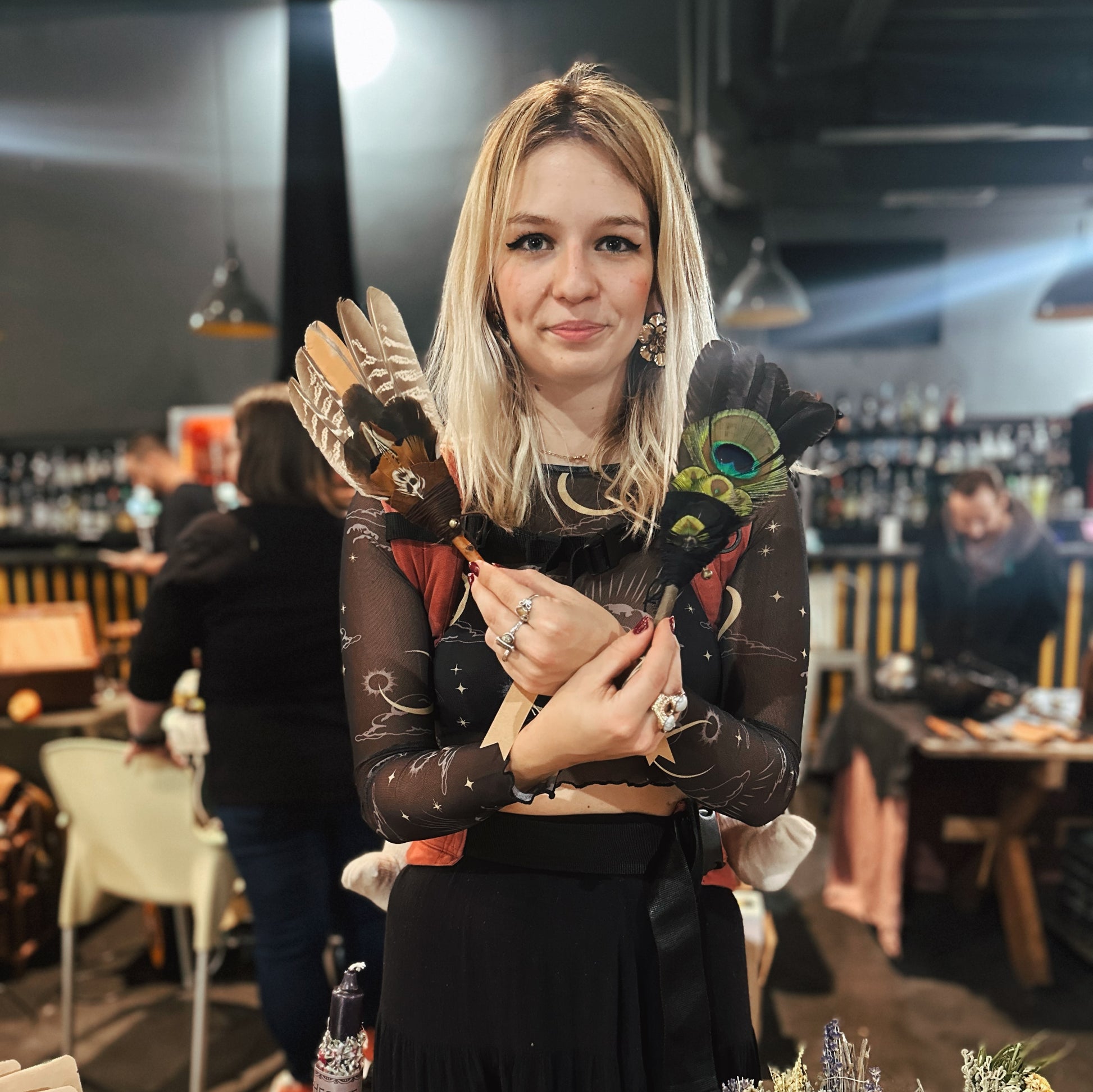 Tartalma: E szett összetételét gondosan válogattuk össze a tökéletes harmónia jegyében, mely tartalmaz egy egyedileg készített füstlegyezőt, egy gyógynövényes füstölőkeveréket és egy ajándék ásvány hold talizmánt. Szeretettel ajánljuk ugyanúgy mindennapi rituáléidhoz, ahogyan ünnepélyesebb szertartásokhoz vagy női körök támogató eszközeiként.